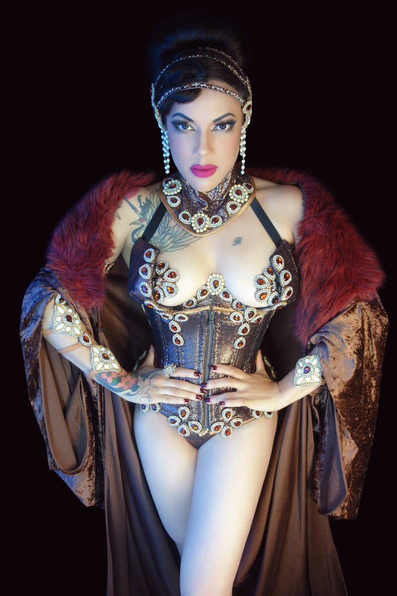 during the World Burlesque Games in London for her signature show “The Madness of Marie Antoinette”.